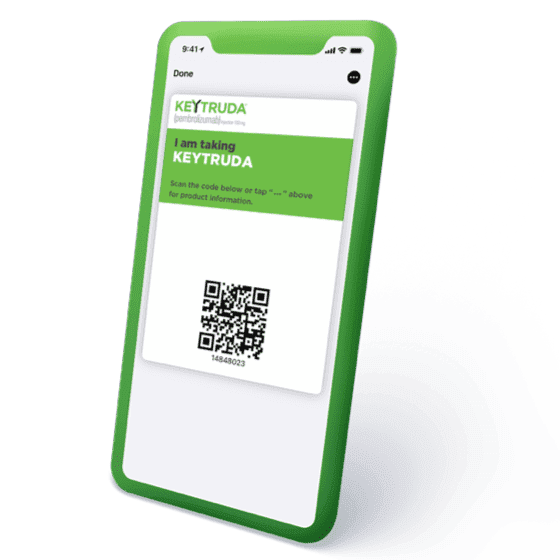 At some point, patients and caregivers may need to receive medical care from professionals who are not part of their cancer care team, such as ER staff. The mobile wallet card is an easy way to let professionals know that the patient is currently taking KEYTRUDA.